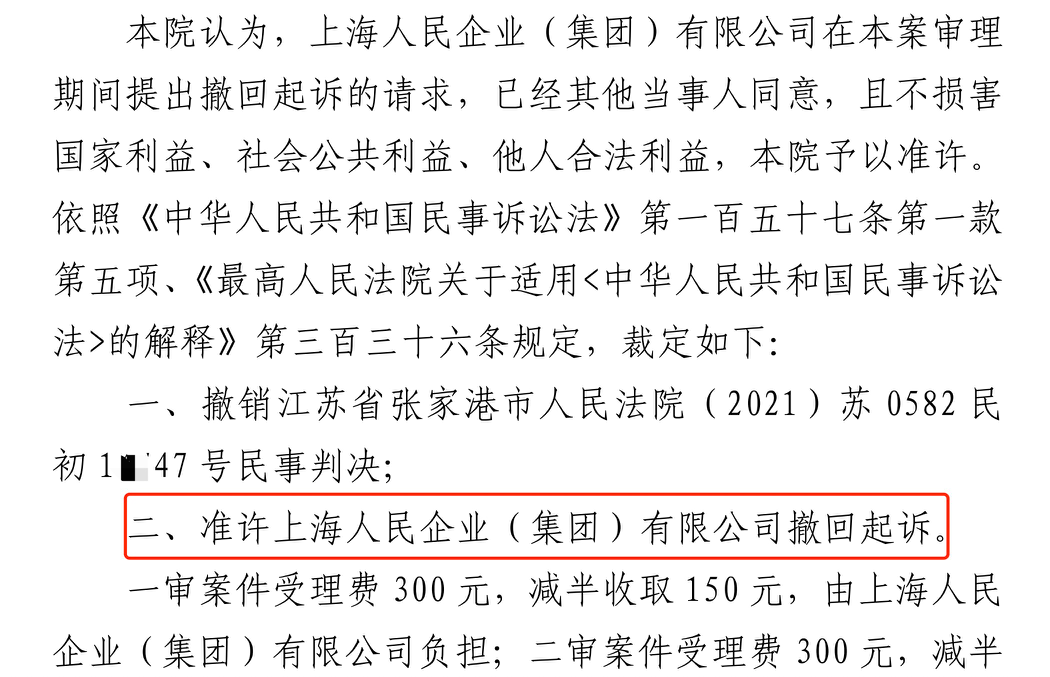 大同胜诉佳讯 | 人民企业系列案苏州六案上海人民公司撤诉
