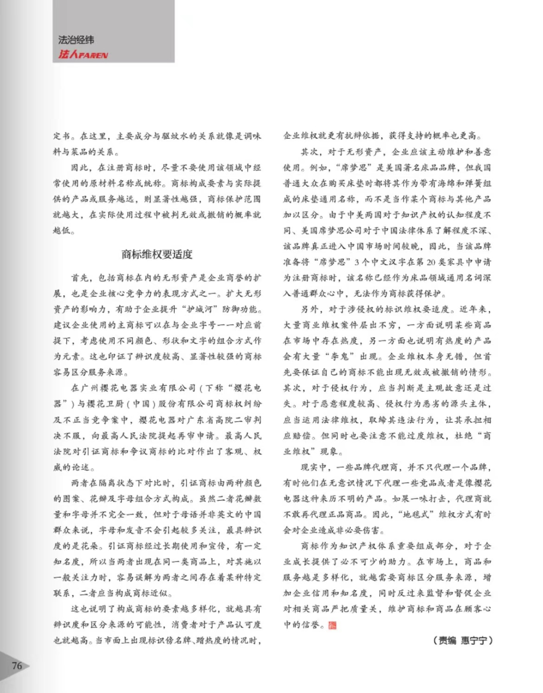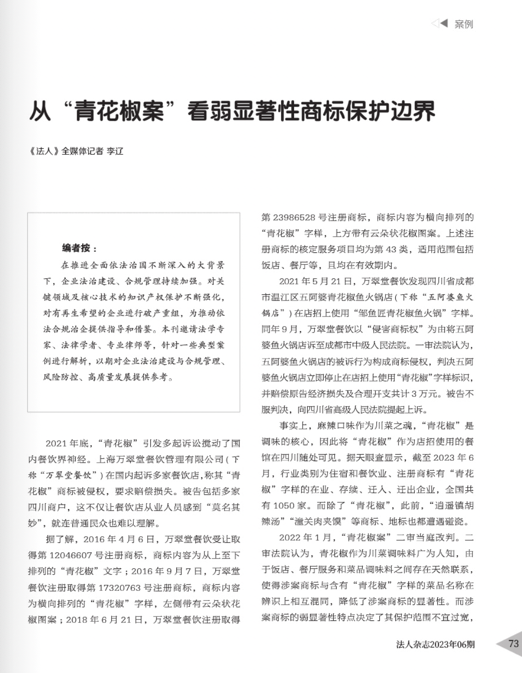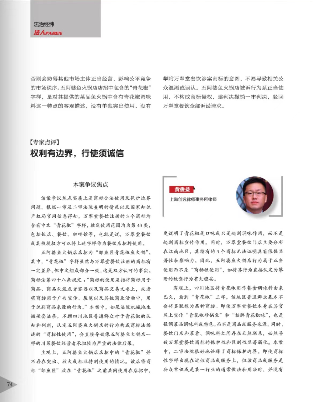 大同辉知简讯 | 辉知队黄俊益律师应“法治日报”旗下杂志邀请,就“青花椒”案发表专家点评