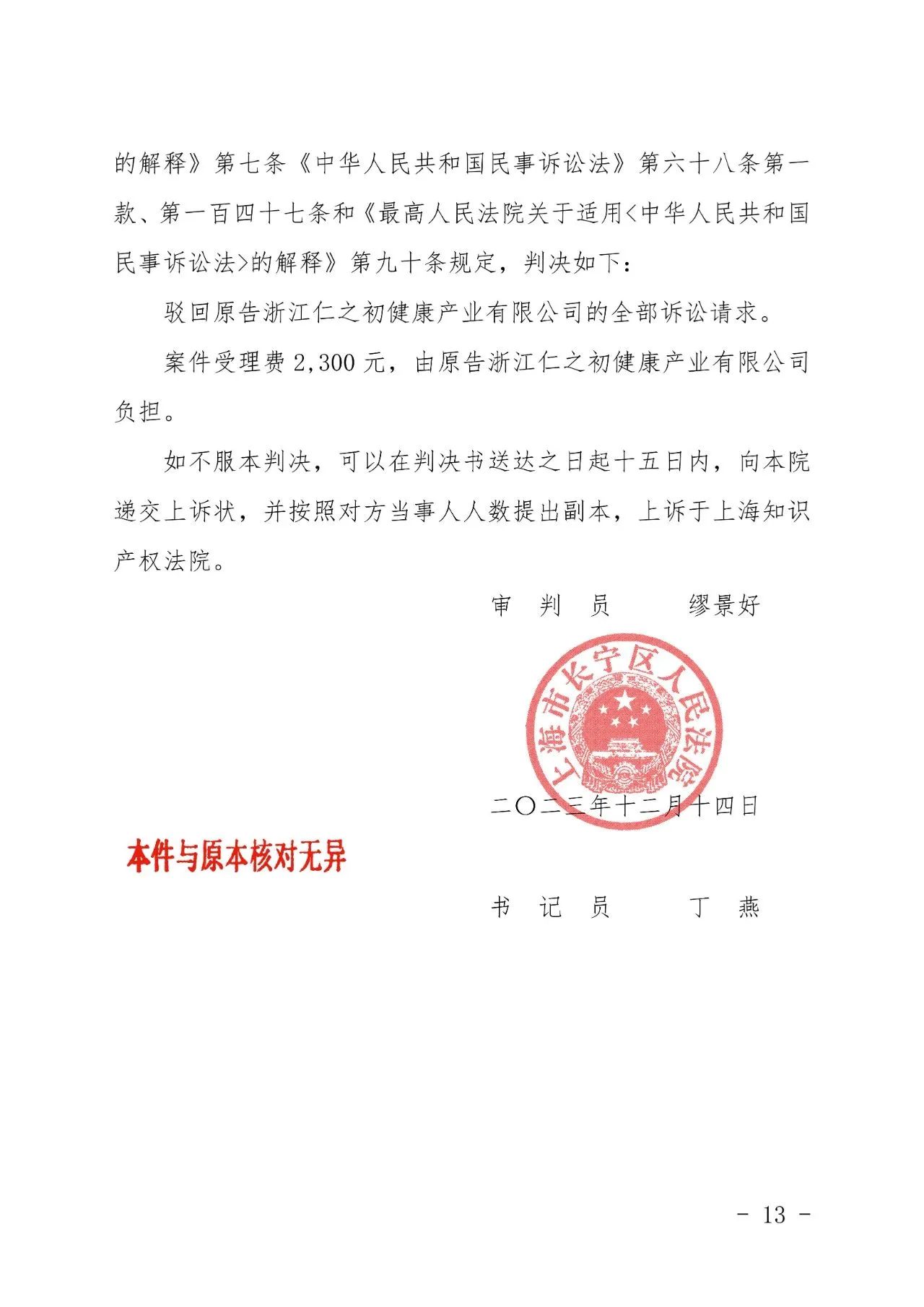 大同辉知胜诉佳讯 | “仁之初健康”著作权及不正当竞争纠纷案,法院:驳回全部诉讼请求!