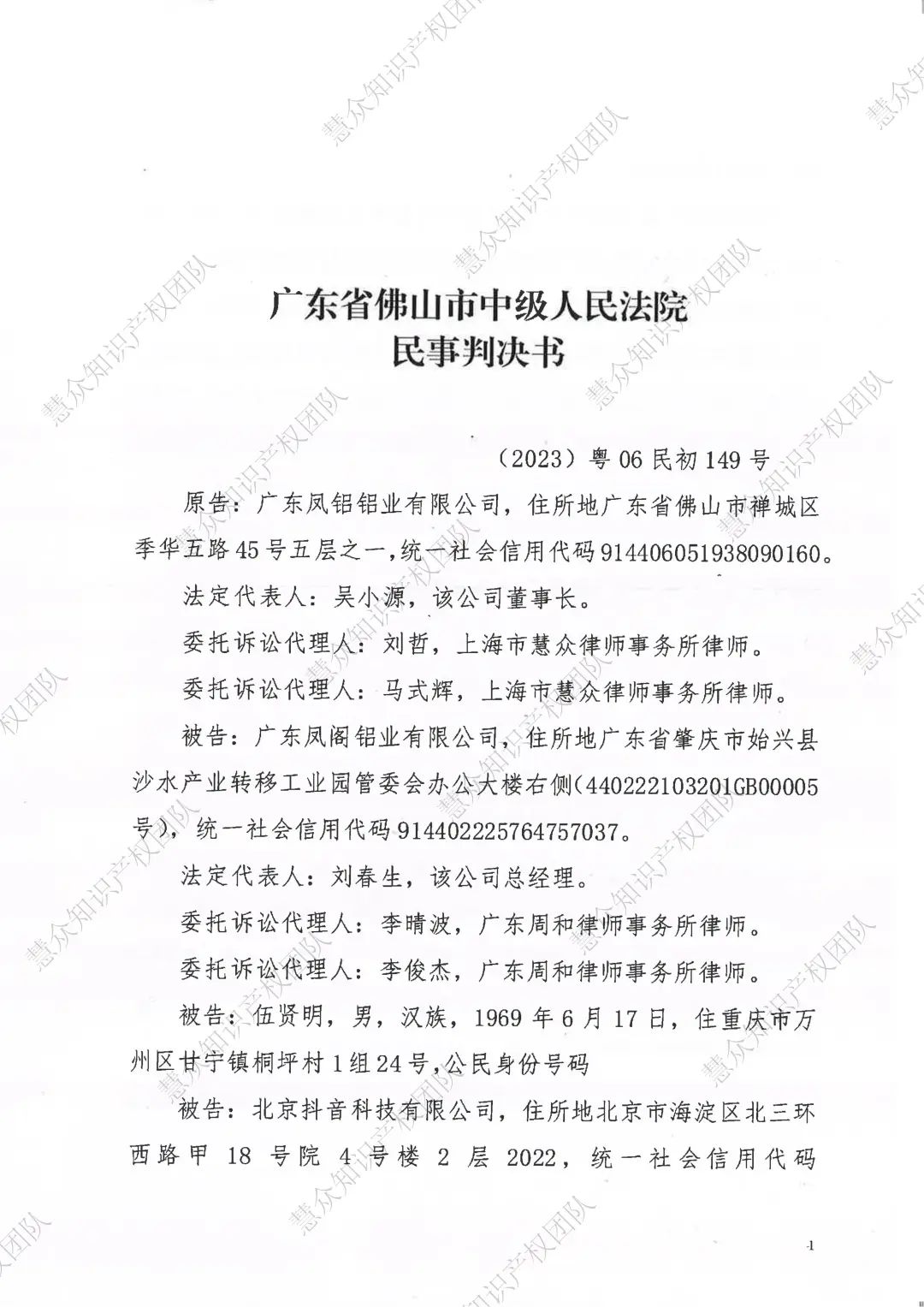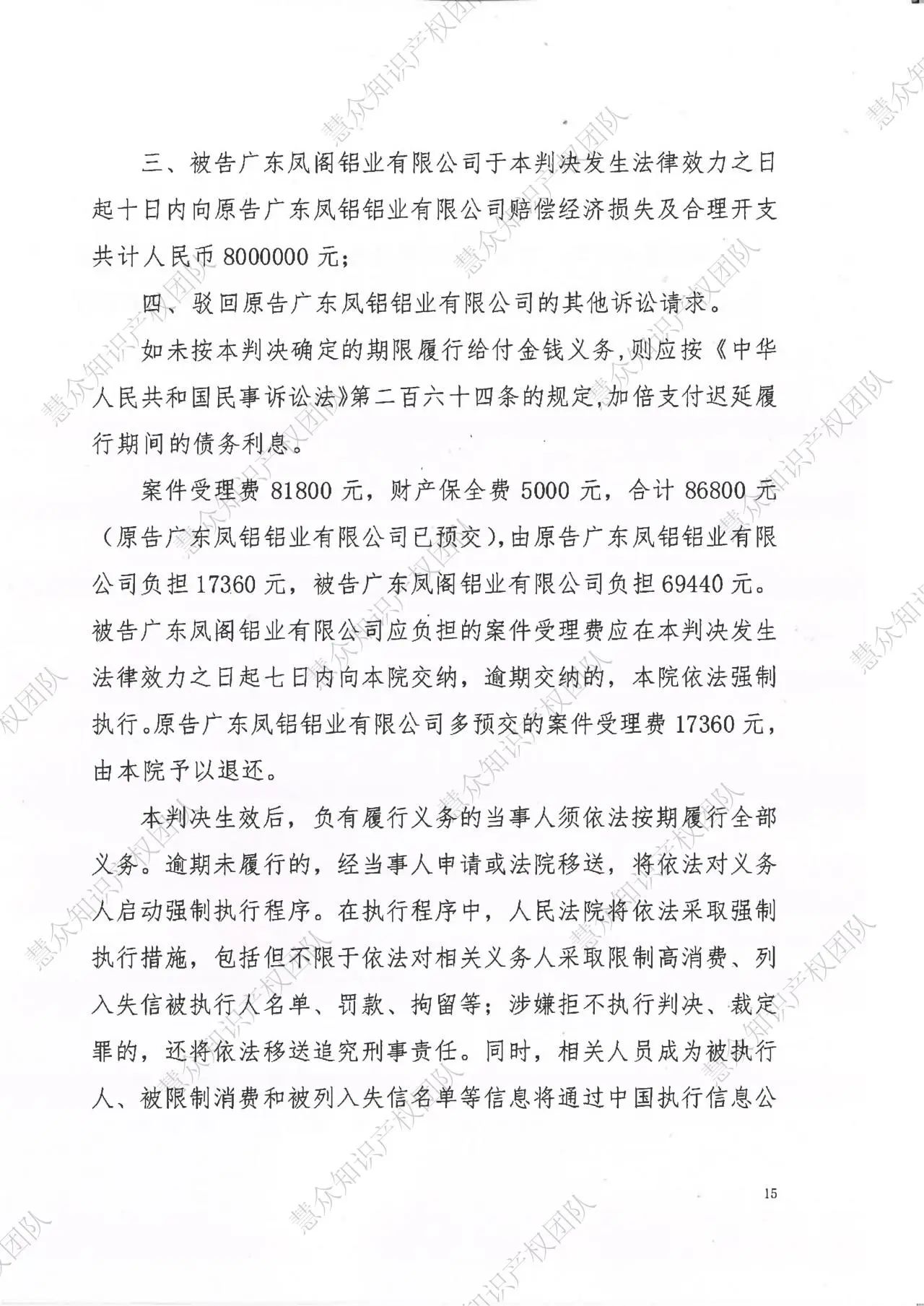 大同判赔800万!辉知队代理“凤铝”商标维权案胜诉